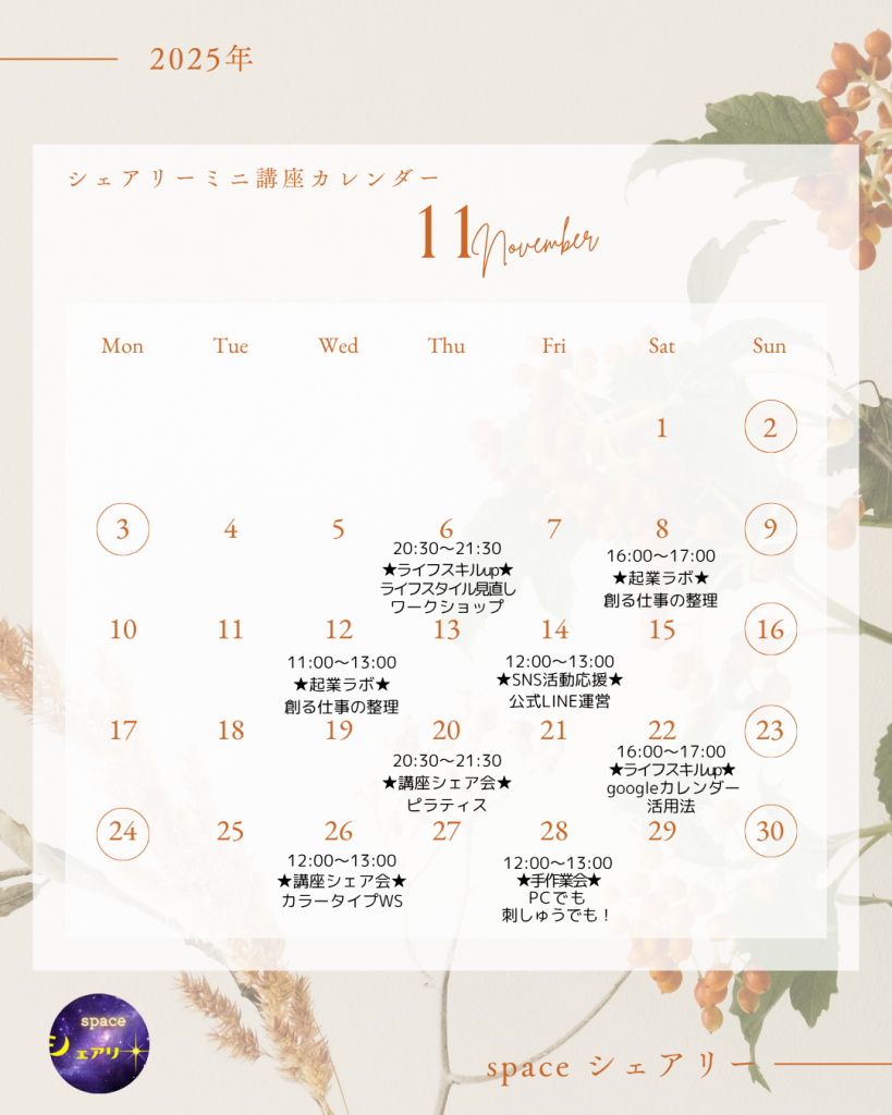 ○起業されていなくても、ライフスキルアップなど、楽しい毎日を送りたい♪と思っている方にはぴったりの会員サービスです✨