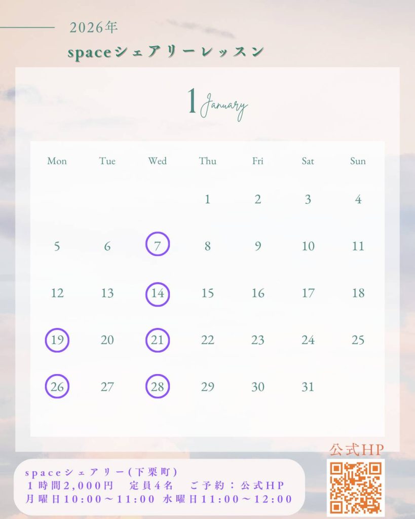 1月の残りレッスン、そして2月のご予約受付もスタートしました。