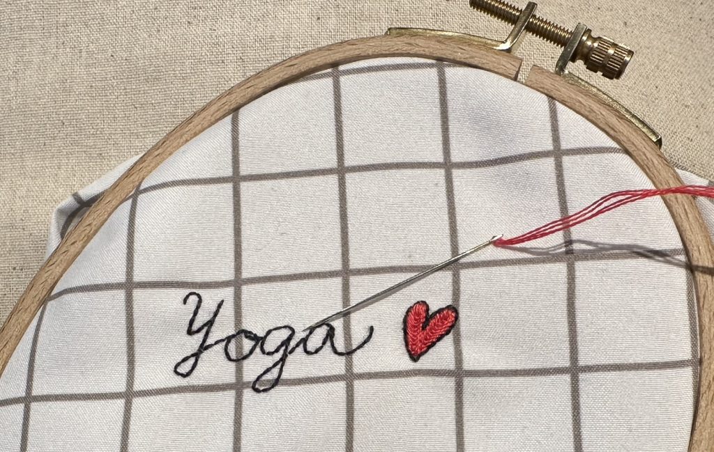 刺しゅう枠、布、糸、針、糸切りハサミはとても軽量で場所も取らないので、小さなジップバックなどで持ち歩けば、車内、病院、お仕事の休憩中などのちょっとした空き時間でも気軽にできます。