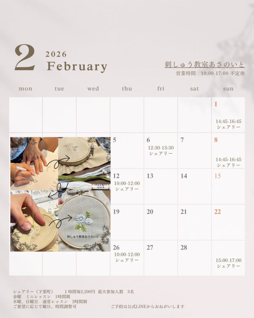 2月は以下の日程でレッスンを開催します。